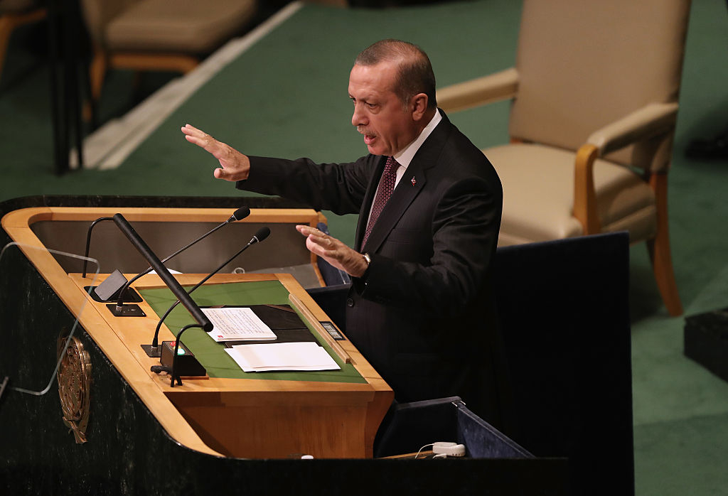 Turkey, thanks to the United Nations, will now officially be in charge of deciding not only who is a refugee but also where he or she will be placed or transferred. Turkish state authorities have repeatedly threatened to flood Europe with refugees. Pictured: Turkish President Recep Tayyip Erdogan addresses the UN General Assembly. (Photo by John Moore/Getty Images)